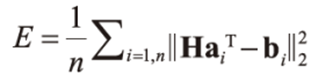 H는 a’i를 H*a’i로 투영하는데, H*a’i와 b’i값의 차이를 오차라고 함. 아래 식은 모든 점의 오차를 평균함. 최소평균제곱오차는 E가 최소인 H를 찾아준다. *n은 매칭 쌍의 수를 의미함