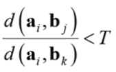 최근접 이웃 : a’j는 B에서 거리가 가장 작은 b’j를 찾고 a’j와 b’j가 위의 식을 만족하면 매칭쌍으로 취함.
