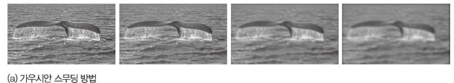 가우시안 스무딩 방법 : 거리가 멀어지면 세부 내용이 점점 흐려지는 현상 모방. 표준편차를 조절하여 스케일을 연속값으로 세밀하게 조절할 수 있는 장점
