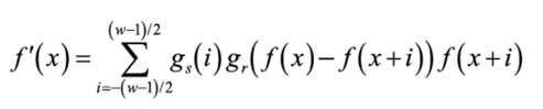 : 그 뒤 가우시안 함수는 현재 화소의 값 x의 값 f(x)와 이웃 화소의 값 f(x+i)의 차이를 매개변수로 갖는데, 두 화소의 값이 같아 차이가 0이라면 g’r(0)이 되어 가장 큰 값을 갖고, 값이 큰 차이가 난다면 g’r값은 작아진다.