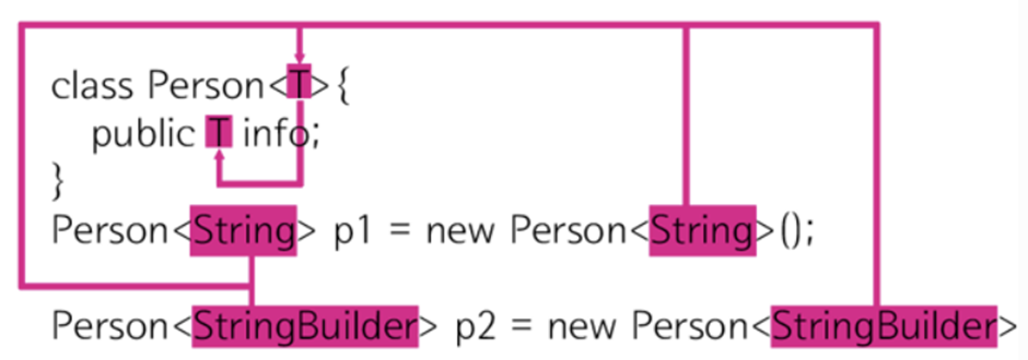 - μ΄ν Personμ΄ μΈμ€ν΄μ€νν λ μ§μ ν ꡬ체μ μΈ λ°μ΄ν° νμ (μ¬κΈ°μμλ string)μ΄ Tμ리μ λ€μ΄κ° λ³μ infoκ°νμ μ κ°κ² λλ€.
